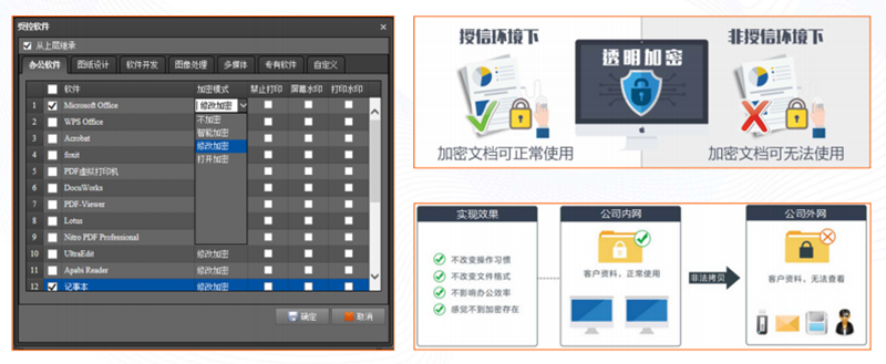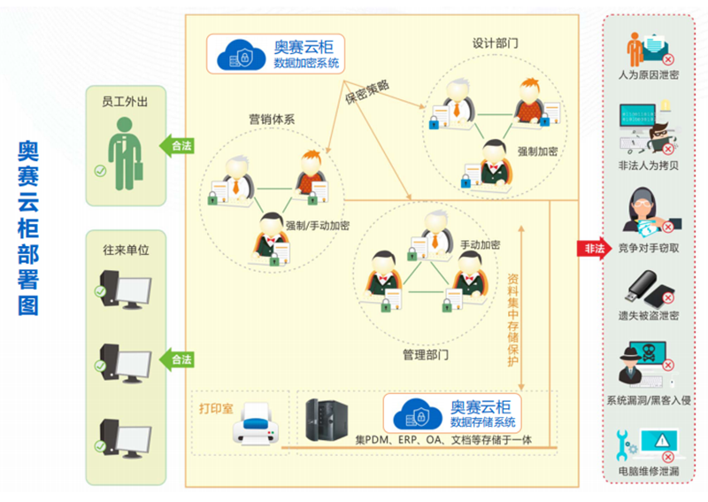 奧賽云柜的數(shù)據(jù)加密與解密可采用多樣化的靈活策略,可針對(duì)指定文檔格式進(jìn)行加密。解密外發(fā)可設(shè)置郵箱白名單(發(fā)送者白名單、接收者白名單),提高辦公對(duì)接效率。并可以通過手機(jī)App進(jìn)行在線查閱及解密,降低管理難度。