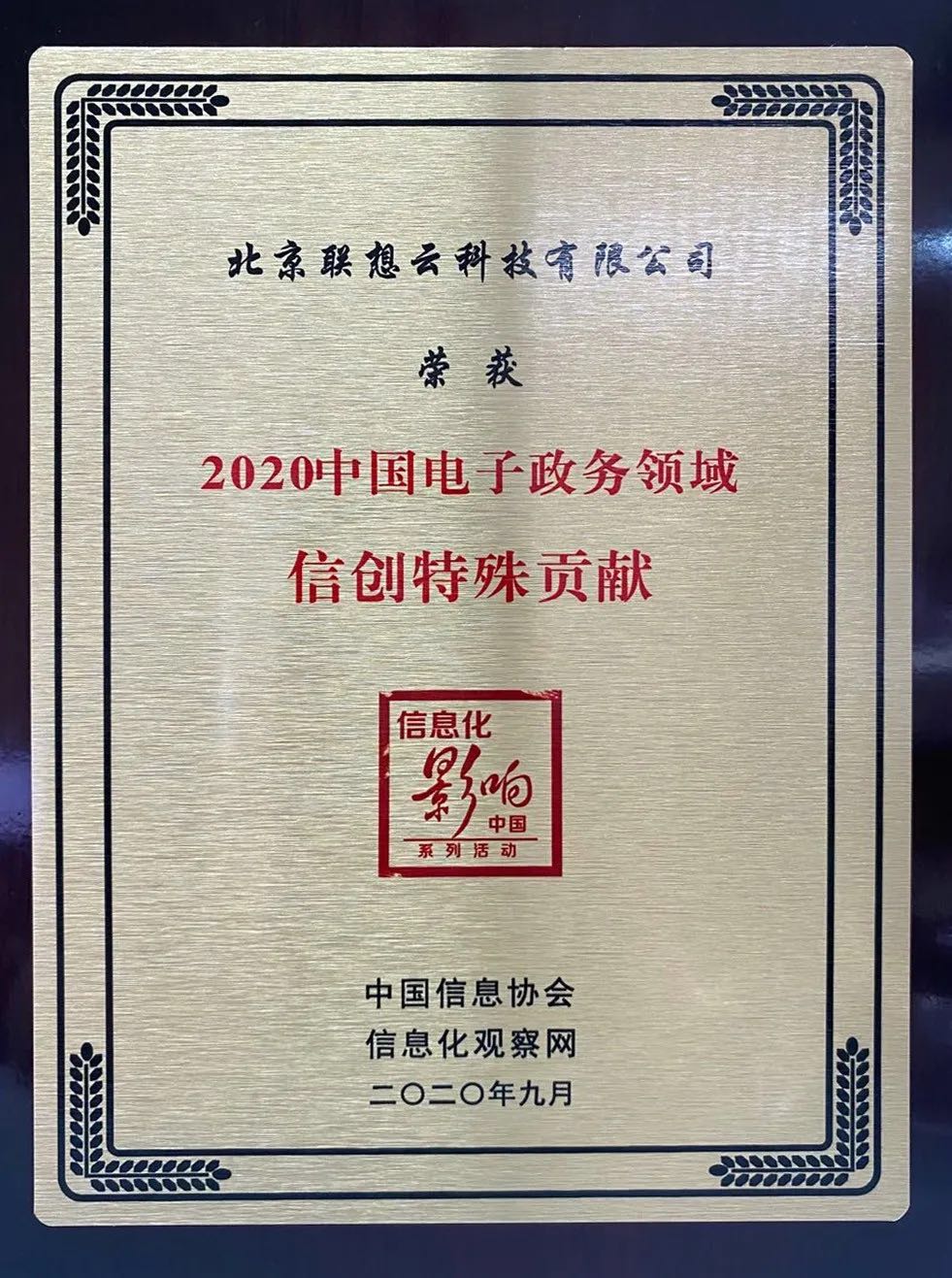 2020年9月,在第二屆中國(guó)電子政務(wù)安全大會(huì)上,聯(lián)想云榮獲2020中國(guó)電子政務(wù)領(lǐng)域信創(chuàng)特殊貢獻(xiàn)。